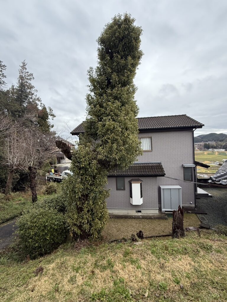 クレーンからみて家裏にあって、35度程家に傾いていて難しい案件でした。
